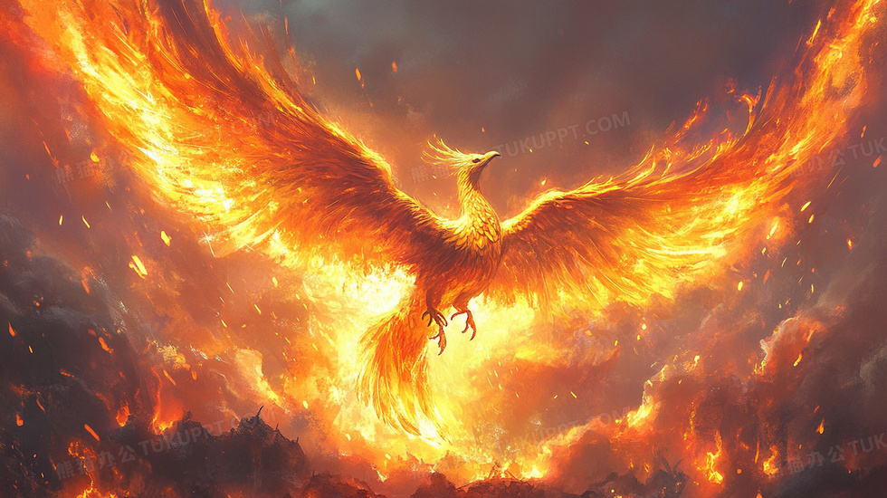 本作品内容为中国风火凤凰吉祥神兽插画, 格式为 jpg, 大小4 MB, 图片尺寸为2912 x 1632, 源文件无水印, 欢迎使用熊猫办公。 如认为平台内容涉嫌侵权,可通过邮件:tousu@tukuppt.com提出书面通知,我们将及时处理。