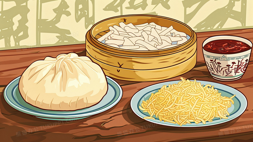 本作品内容为桌面上的美食早餐汤包插画, 格式为 jpg, 大小3 MB, 图片尺寸为2912 x 1632, 源文件无水印, 欢迎使用熊猫办公。 如认为平台内容涉嫌侵权,可通过邮件:tousu@tukuppt.com提出书面通知,我们将及时处理。