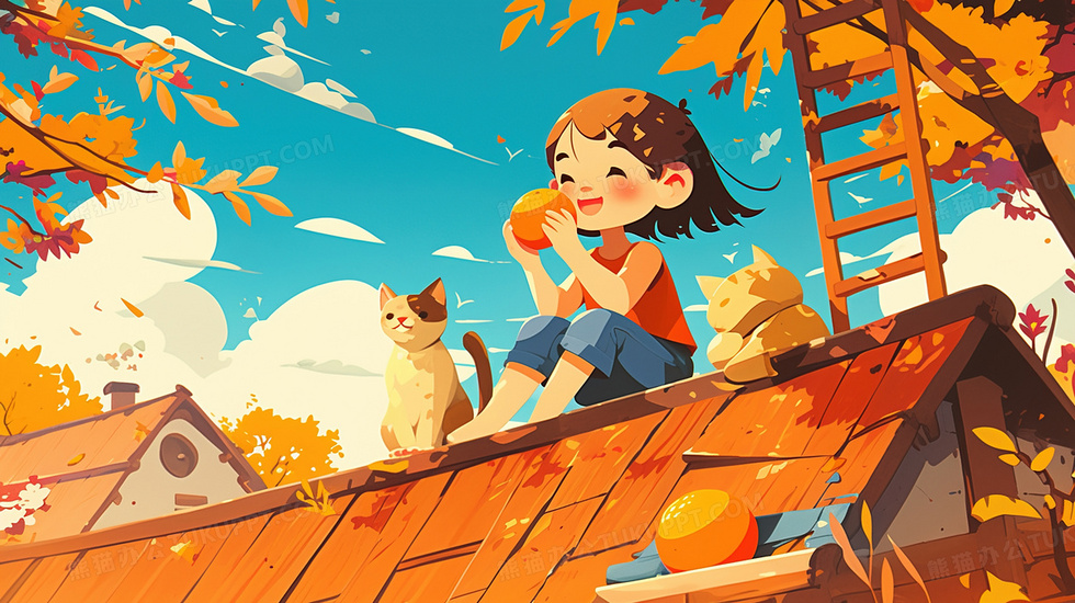 本作品内容为屋顶上吃柿子的小女孩和宠物猫插画, 格式为 jpg, 大小3 MB, 图片尺寸为2912 x 1632, 源文件无水印, 欢迎使用熊猫办公。 如认为平台内容涉嫌侵权,可通过邮件:tousu@tukuppt.com提出书面通知,我们将及时处理。