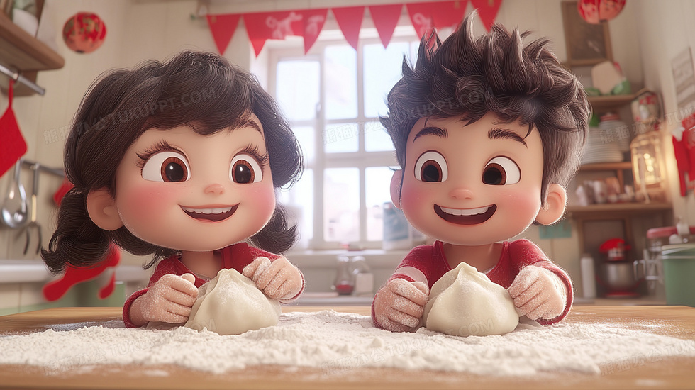 本作品内容为卡通风格孩子们在捏面团包饺子的插画, 格式为 jpg, 大小3 MB, 图片尺寸为2912 x 1632, 源文件无水印, 欢迎使用熊猫办公。 如认为平台内容涉嫌侵权,可通过邮件:tousu@tukuppt.com提出书面通知,我们将及时处理。