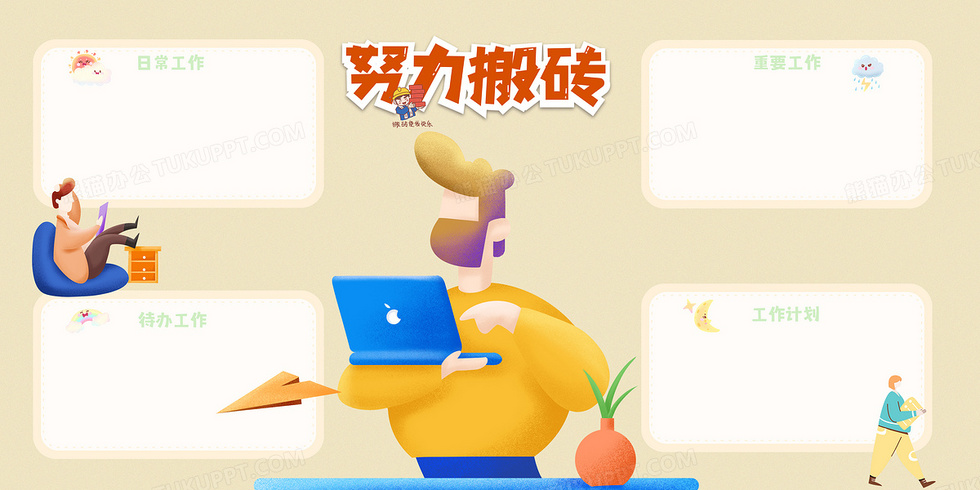 本作品内容为卡通电脑壁纸打工人办公背景, 格式为 psd, 大小35 MB, 图片尺寸为4722 x 2361, 作品中背景图片无需修改, 源文件无水印,可以直接使用, 欢迎使用熊猫办公。 如认为平台内容涉嫌侵权,可通过邮件:tousu@tukuppt.com提出书面通知,我们将及时处理。