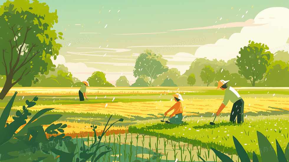 本作品内容为雨天农民田地插秧劳作插画, 格式为 jpg, 大小4 MB, 图片尺寸为2912 x 1632, 源文件无水印, 欢迎使用熊猫办公。 如认为平台内容涉嫌侵权,可通过邮件:tousu@tukuppt.com提出书面通知,我们将及时处理。