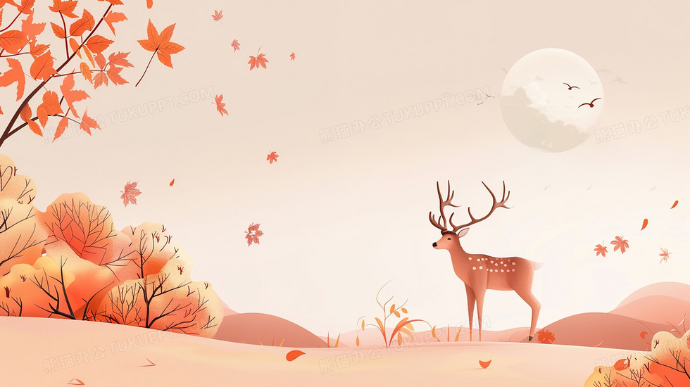 本作品内容为卡通秋日小鹿背景, 格式为 jpg, 大小2 MB, 图片尺寸为2912 x 1632, 作品中背景图片无需修改, 源文件无水印,可以直接使用, 欢迎使用熊猫办公。 如认为平台内容涉嫌侵权,可通过邮件:tousu@tukuppt.com提出书面通知,我们将及时处理。