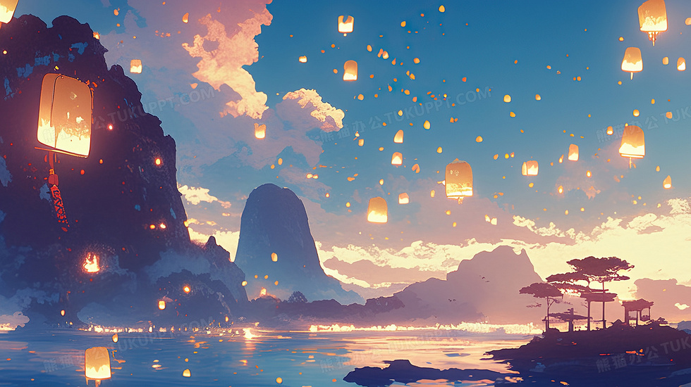 本作品内容为中元节孔明灯中国风祈福插画, 格式为 jpg, 大小3 MB, 图片尺寸为2912 x 1632, 源文件无水印, 欢迎使用熊猫办公。 如认为平台内容涉嫌侵权,可通过邮件:tousu@tukuppt.com提出书面通知,我们将及时处理。