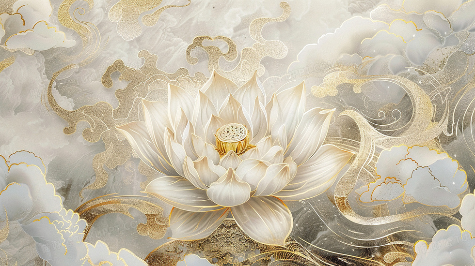 本作品内容为唯美鎏金国潮风莲花插画, 格式为 jpg, 大小5 MB, 图片尺寸为2912 x 1632, 源文件无水印, 欢迎使用熊猫办公。 如认为平台内容涉嫌侵权,可通过邮件:tousu@tukuppt.com提出书面通知,我们将及时处理。