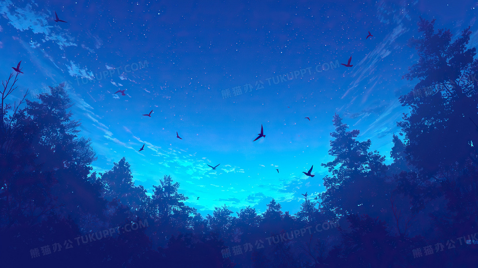 本作品内容为简约夜晚飞鸟背景, 格式为 jpg, 大小4 MB, 图片尺寸为2912 x 1632, 作品中背景图片无需修改, 源文件无水印,可以直接使用, 欢迎使用熊猫办公。 如认为平台内容涉嫌侵权,可通过邮件:tousu@tukuppt.com提出书面通知,我们将及时处理。