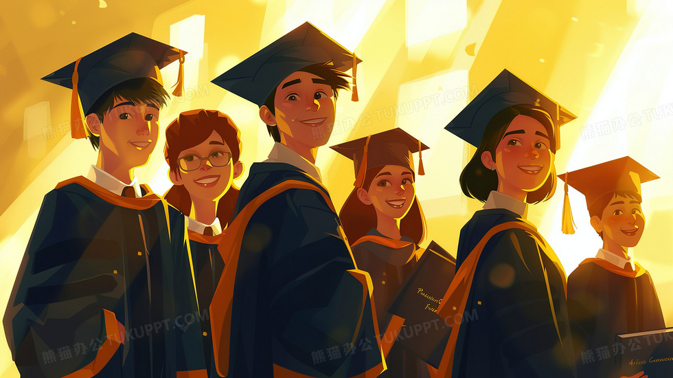 本作品内容为穿学士服合影拍照的毕业生插画, 格式为 jpg, 大小2 MB, 图片尺寸为2912 x 1632, 源文件无水印, 欢迎使用熊猫办公。 如认为平台内容涉嫌侵权,可通过邮件:tousu@tukuppt.com提出书面通知,我们将及时处理。