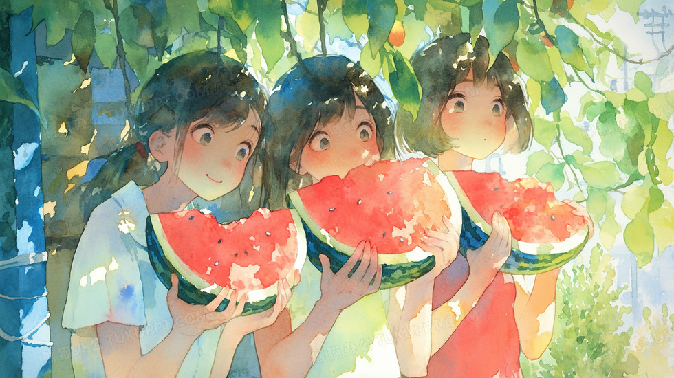 本作品内容为彩色水彩吃西瓜的可爱小女孩插画, 格式为 jpg, 大小3 MB, 图片尺寸为2912 x 1632, 源文件无水印, 欢迎使用熊猫办公。 如认为平台内容涉嫌侵权,可通过邮件:tousu@tukuppt.com提出书面通知,我们将及时处理。