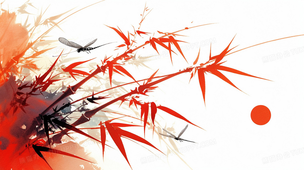 本作品内容为中国风水墨竹叶简约背景, 格式为 jpg, 大小3 MB, 图片尺寸为2912 x 1632, 作品中背景图片无需修改, 源文件无水印,可以直接使用, 欢迎使用熊猫办公。 如认为平台内容涉嫌侵权,可通过邮件:tousu@tukuppt.com提出书面通知,我们将及时处理。