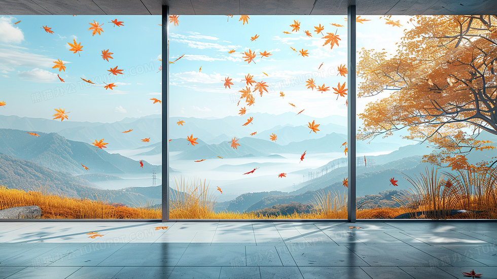 本作品内容为秋天合成秋季落叶落地窗简约背景, 格式为 jpg, 大小4 MB, 图片尺寸为2912 x 1632, 作品中背景图片无需修改, 源文件无水印,可以直接使用, 欢迎使用熊猫办公。 如认为平台内容涉嫌侵权,可通过邮件:tousu@tukuppt.com提出书面通知,我们将及时处理。
