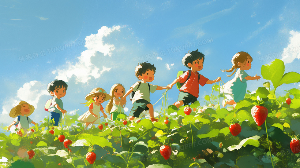 本作品内容为夏令营的孩子们在水果园采摘草莓插画, 格式为 jpg, 大小8 MB, 图片尺寸为2912 x 1632, 源文件无水印, 欢迎使用熊猫办公。 如认为平台内容涉嫌侵权,可通过邮件:tousu@tukuppt.com提出书面通知,我们将及时处理。