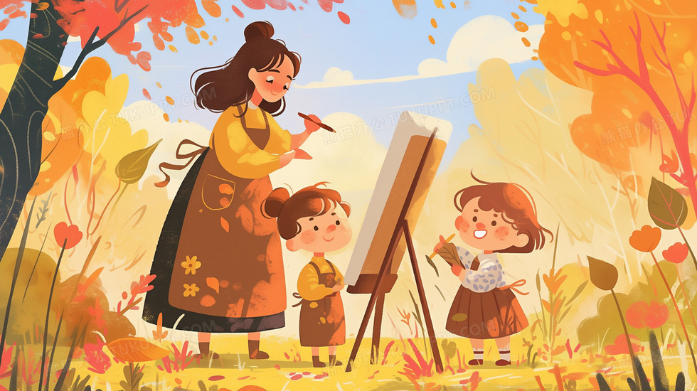 本作品内容为秋季美术老师带小朋友大自然写生插画, 格式为 jpg, 大小7 MB, 图片尺寸为2912 x 1632, 源文件无水印, 欢迎使用熊猫办公。 如认为平台内容涉嫌侵权,可通过邮件:tousu@tukuppt.com提出书面通知,我们将及时处理。