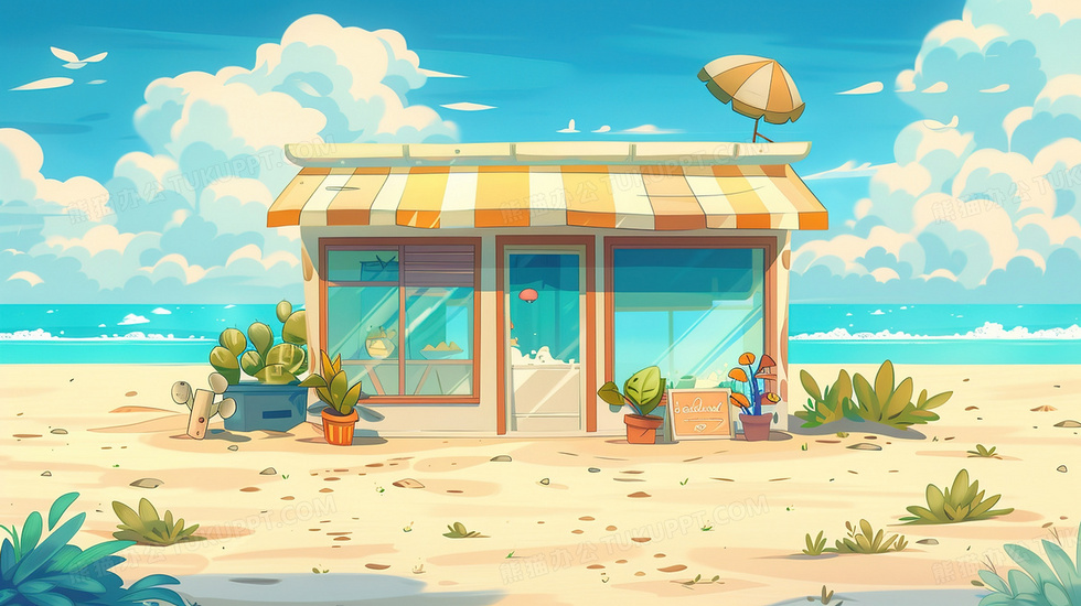 本作品内容为夏季海边小店插画, 格式为 jpg, 大小3 MB, 图片尺寸为2912 x 1632, 源文件无水印, 欢迎使用熊猫办公。 如认为平台内容涉嫌侵权,可通过邮件:tousu@tukuppt.com提出书面通知,我们将及时处理。