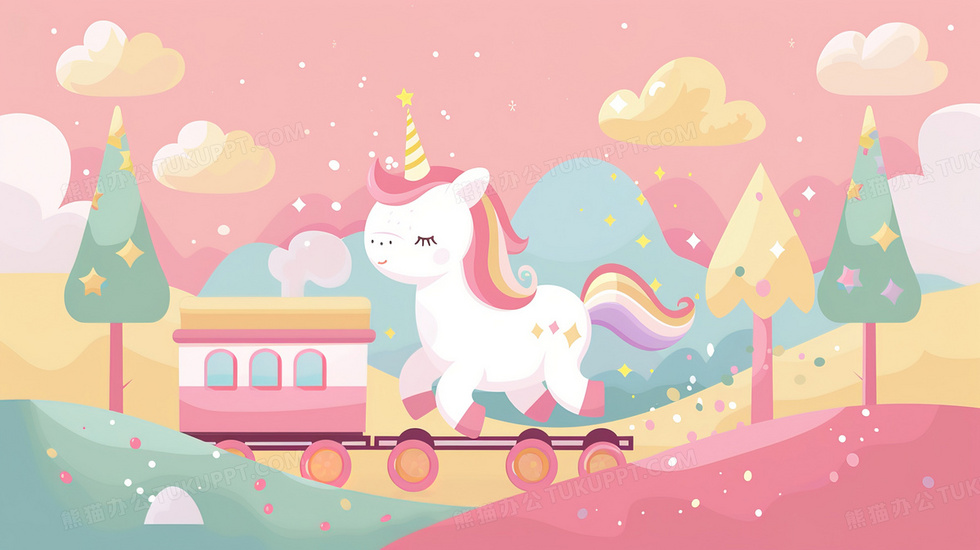 本作品内容为儿童节独角兽小火车玩具插画, 格式为 jpg, 大小2 MB, 图片尺寸为2912 x 1632, 源文件无水印, 欢迎使用熊猫办公。 如认为平台内容涉嫌侵权,可通过邮件:tousu@tukuppt.com提出书面通知,我们将及时处理。