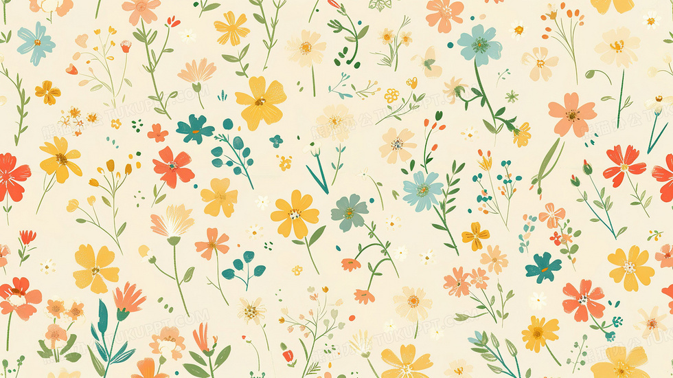 本作品内容为米黄底色的小野花装饰小清新背景, 格式为 jpg, 大小3 MB, 图片尺寸为2912 x 1632, 源文件无水印, 欢迎使用熊猫办公。 如认为平台内容涉嫌侵权,可通过邮件:tousu@tukuppt.com提出书面通知,我们将及时处理。