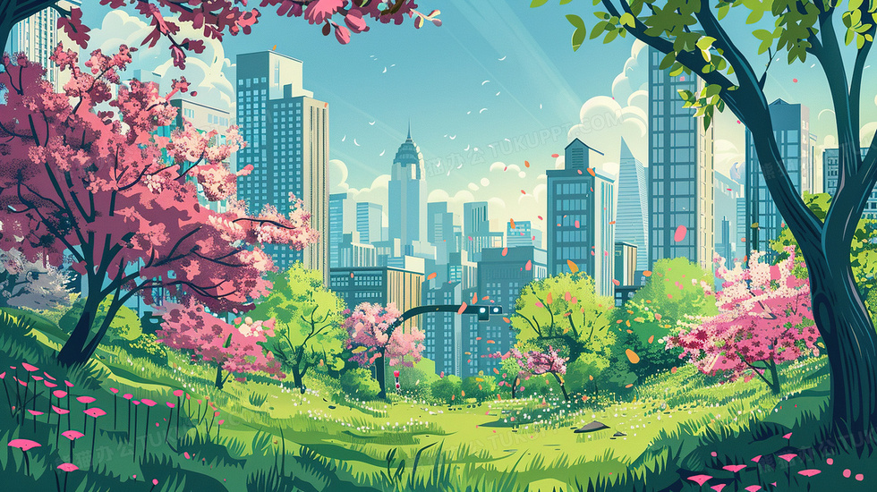本作品内容为春天城市建筑自然风景插画, 格式为 jpg, 大小5 MB, 图片尺寸为2912 x 1632, 源文件无水印, 欢迎使用熊猫办公。 如认为平台内容涉嫌侵权,可通过邮件:tousu@tukuppt.com提出书面通知,我们将及时处理。