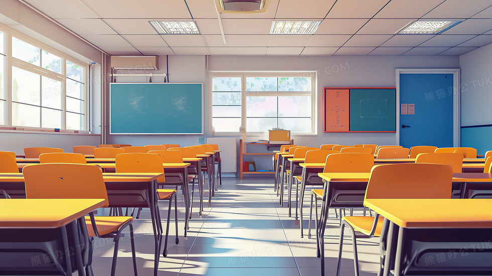 本作品内容为课桌整齐摆放的阳光照射的教室插画, 格式为 jpg, 大小3 MB, 图片尺寸为2912 x 1632, 源文件无水印, 欢迎使用熊猫办公。 如认为平台内容涉嫌侵权,可通过邮件:tousu@tukuppt.com提出书面通知,我们将及时处理。