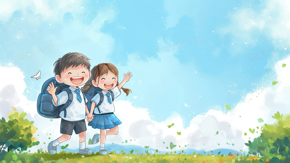 本作品内容为新学期蓝天白云下手拉手上学小朋友插画, 格式为 jpg, 大小3 MB, 图片尺寸为2912 x 1632, 源文件无水印, 欢迎使用熊猫办公。 如认为平台内容涉嫌侵权,可通过邮件:tousu@tukuppt.com提出书面通知,我们将及时处理。