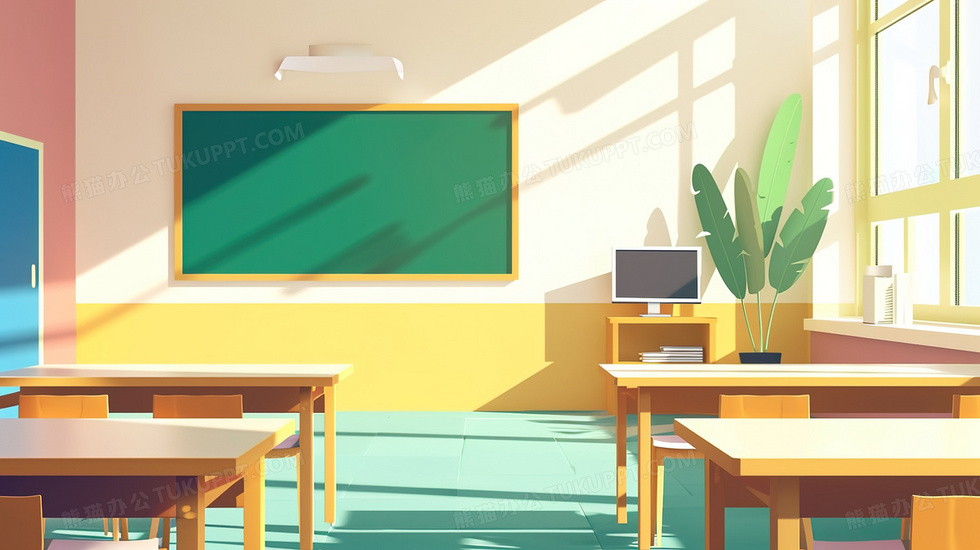 本作品内容为扁平化阳光教室课堂书桌插画, 格式为 jpg, 大小2 MB, 图片尺寸为2912 x 1632, 源文件无水印, 欢迎使用熊猫办公。 如认为平台内容涉嫌侵权,可通过邮件:tousu@tukuppt.com提出书面通知,我们将及时处理。