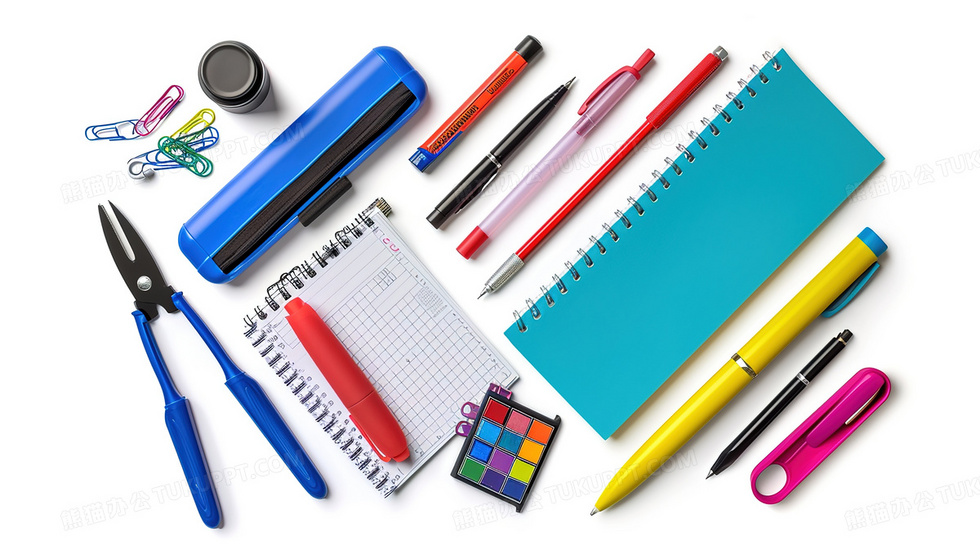 本作品内容为彩色学习文具俯视角度插画, 格式为 jpg, 大小2 MB, 图片尺寸为2912 x 1632, 源文件无水印, 欢迎使用熊猫办公。 如认为平台内容涉嫌侵权,可通过邮件:tousu@tukuppt.com提出书面通知,我们将及时处理。