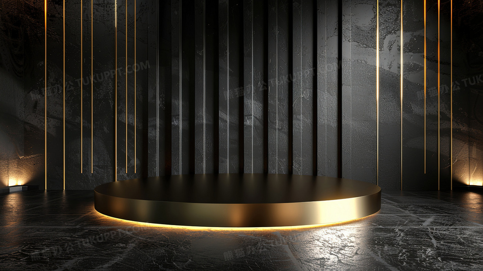 本作品内容为黑金电商简约装饰展台背景, 格式为 jpg, 大小4 MB, 图片尺寸为2912 x 1632, 作品中背景图片无需修改, 源文件无水印,可以直接使用, 欢迎使用熊猫办公。 如认为平台内容涉嫌侵权,可通过邮件:tousu@tukuppt.com提出书面通知,我们将及时处理。