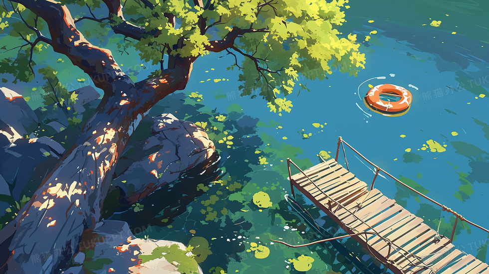 本作品内容为夏日池塘绿树救生圈插画, 格式为 jpg, 大小3 MB, 图片尺寸为2912 x 1632, 源文件无水印, 欢迎使用熊猫办公。 如认为平台内容涉嫌侵权,可通过邮件:tousu@tukuppt.com提出书面通知,我们将及时处理。