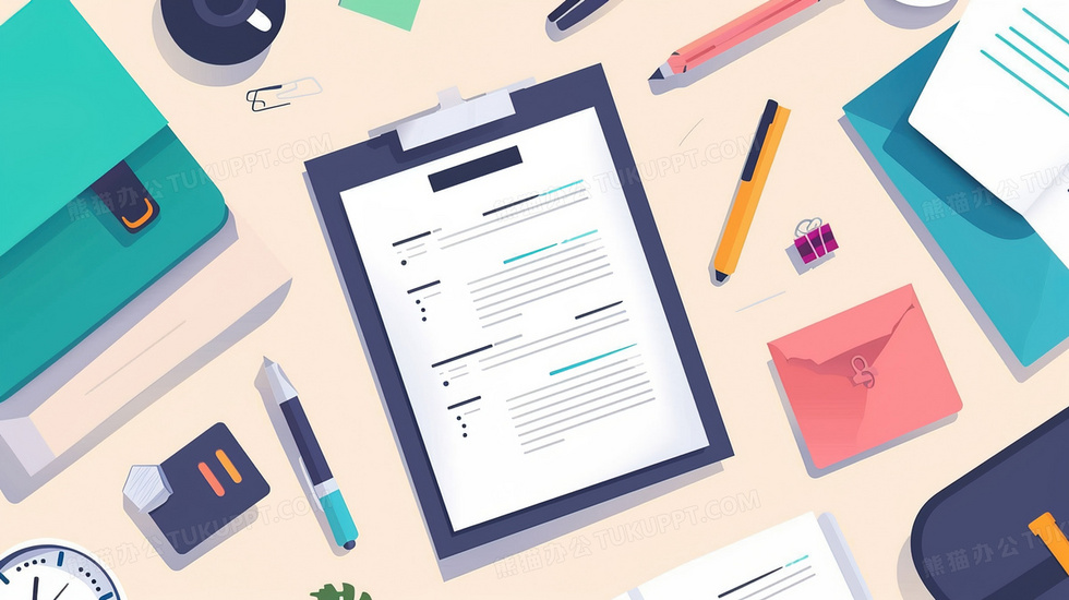 本作品内容为企业人力资源面试简历桌面插画, 格式为 jpg, 大小2 MB, 图片尺寸为2912 x 1632, 源文件无水印, 欢迎使用熊猫办公。 如认为平台内容涉嫌侵权,可通过邮件:tousu@tukuppt.com提出书面通知,我们将及时处理。