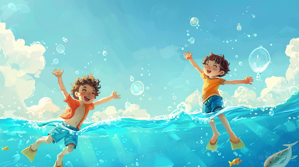 本作品内容为儿童节开心的孩子在海里游玩插画, 格式为 jpg, 大小2 MB, 图片尺寸为1456 x 816, 源文件无水印, 欢迎使用熊猫办公。 如认为平台内容涉嫌侵权,可通过邮件:tousu@tukuppt.com提出书面通知,我们将及时处理。