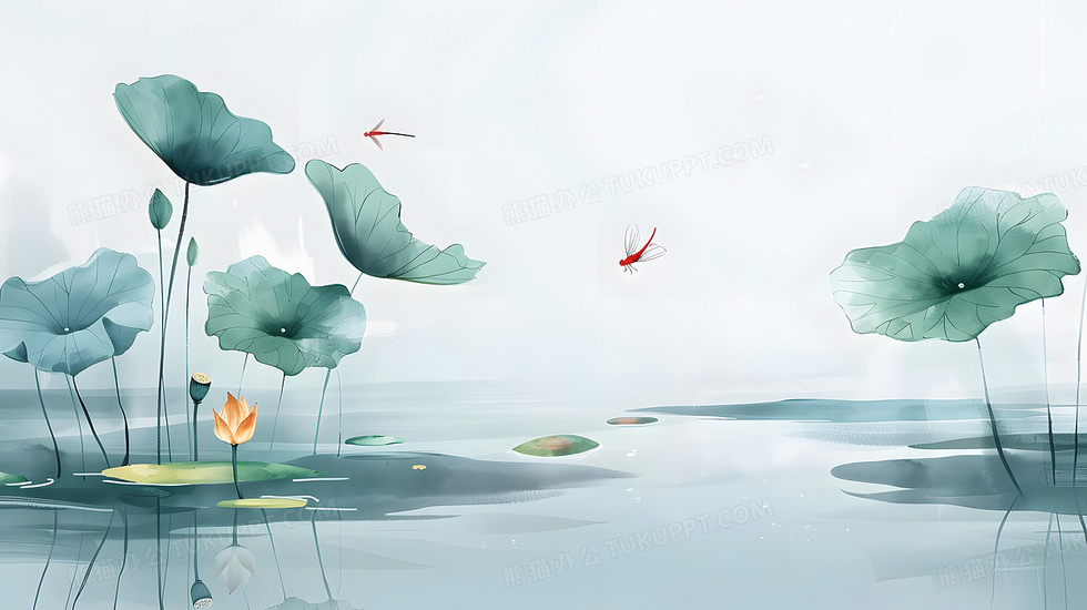 本作品内容为清新唯美池塘荷叶蜻蜓插画, 格式为 jpg, 大小6 MB, 图片尺寸为5824 x 3264, 源文件无水印, 欢迎使用熊猫办公。 如认为平台内容涉嫌侵权,可通过邮件:tousu@tukuppt.com提出书面通知,我们将及时处理。