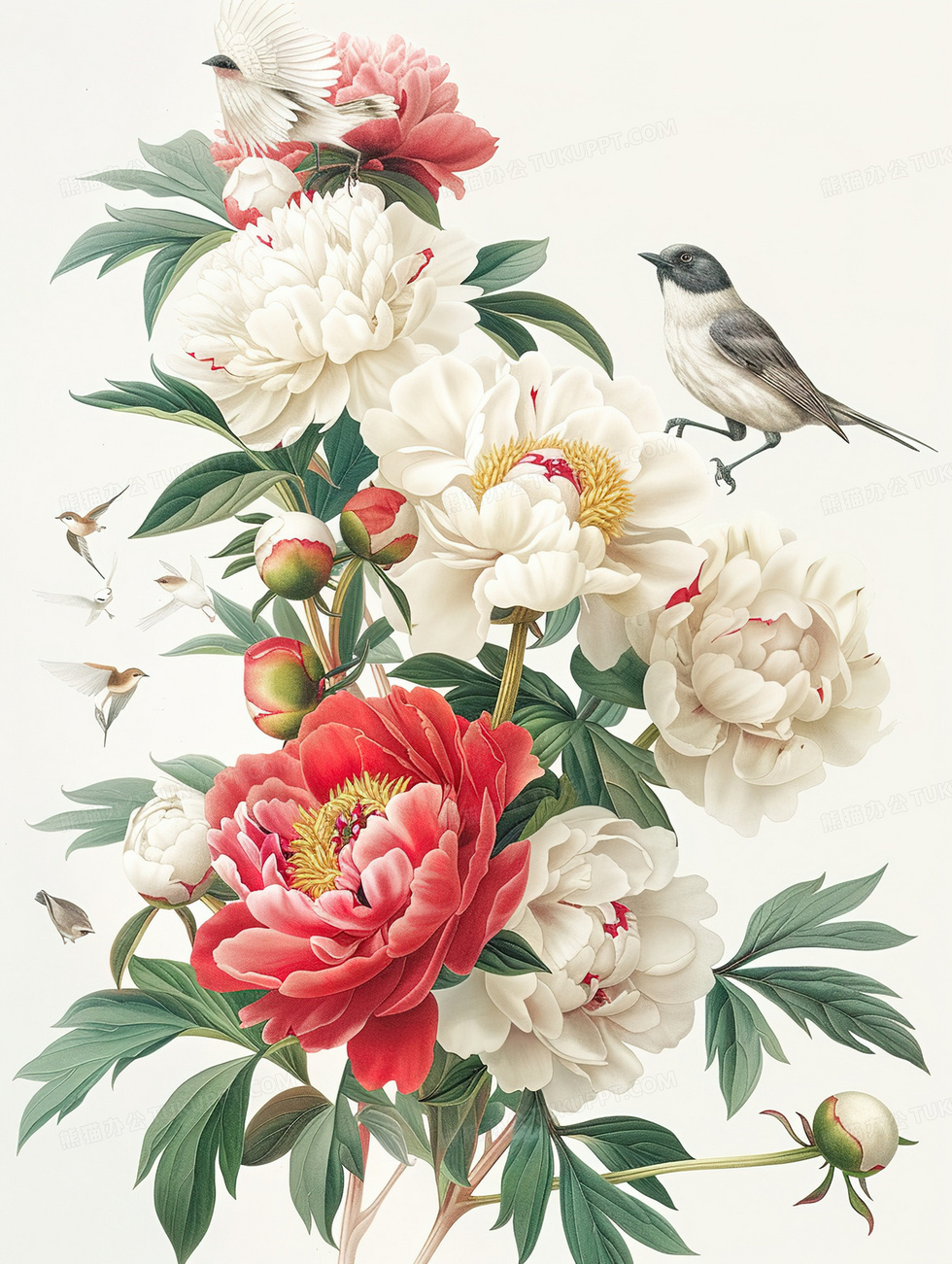 本作品内容为唯美富贵牡丹小鸟插画, 格式为 jpg, 大小3 MB, 图片尺寸为1856 x 2464, 源文件无水印, 欢迎使用熊猫办公。 如认为平台内容涉嫌侵权,可通过邮件:tousu@tukuppt.com提出书面通知,我们将及时处理。