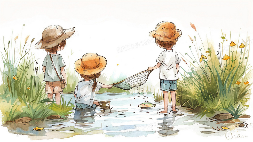 本作品内容为夏天鱼池捞鱼的小孩插画, 格式为 jpg, 大小3 MB, 图片尺寸为2912 x 1632, 源文件无水印, 欢迎使用熊猫办公。 如认为平台内容涉嫌侵权,可通过邮件:tousu@tukuppt.com提出书面通知,我们将及时处理。