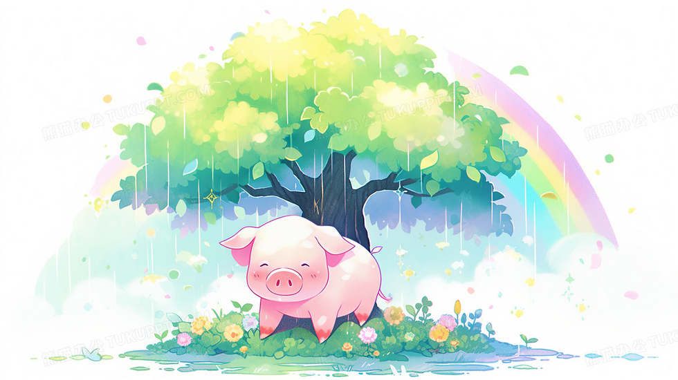 本作品内容为雨中彩虹红树下卡爱的小猪趴在树下插画, 格式为 jpg, 大小2 MB, 图片尺寸为2912 x 1632, 源文件无水印, 欢迎使用熊猫办公。 如认为平台内容涉嫌侵权,可通过邮件:tousu@tukuppt.com提出书面通知,我们将及时处理。