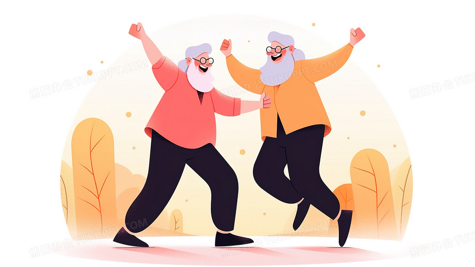 本作品内容为两个老年人跳舞插画, 格式为 jpg, 大小1 MB, 图片尺寸为2912 x 1632, 源文件无水印, 欢迎使用熊猫办公。 如认为平台内容涉嫌侵权,可通过邮件:tousu@tukuppt.com提出书面通知,我们将及时处理。