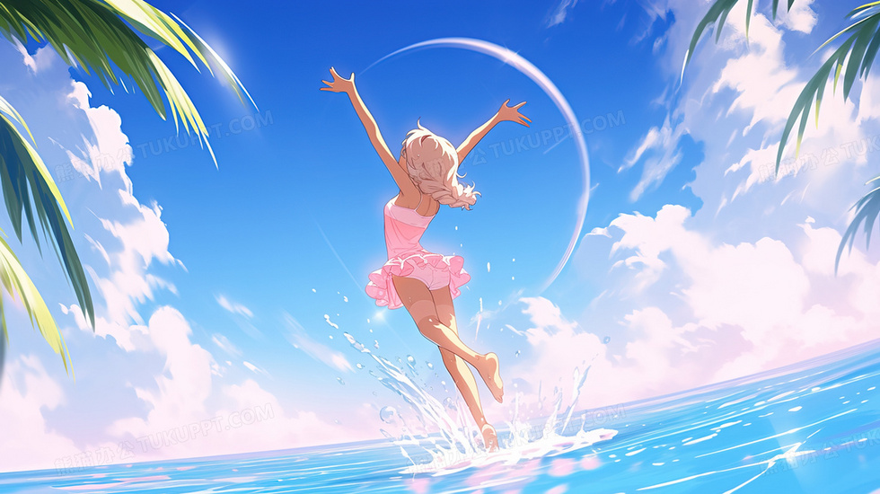 本作品内容为夏日沙滩海边的女生插画, 格式为 jpg, 大小2 MB, 图片尺寸为2912 x 1632, 源文件无水印, 欢迎使用熊猫办公。 如认为平台内容涉嫌侵权,可通过邮件:tousu@tukuppt.com提出书面通知,我们将及时处理。
