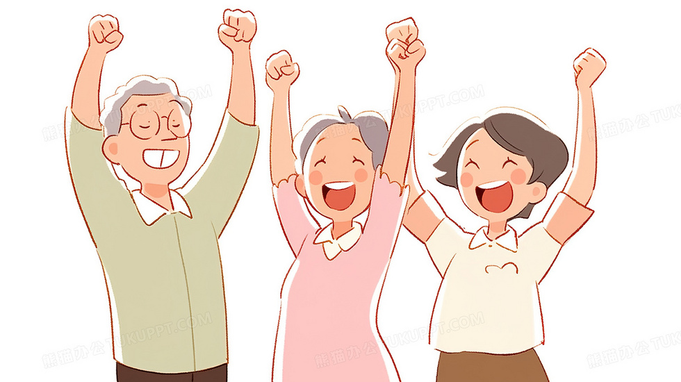 本作品内容为举手欢呼的老人们插画, 格式为 jpg, 大小2 MB, 图片尺寸为2912 x 1632, 源文件无水印, 欢迎使用熊猫办公。 如认为平台内容涉嫌侵权,可通过邮件:tousu@tukuppt.com提出书面通知,我们将及时处理。