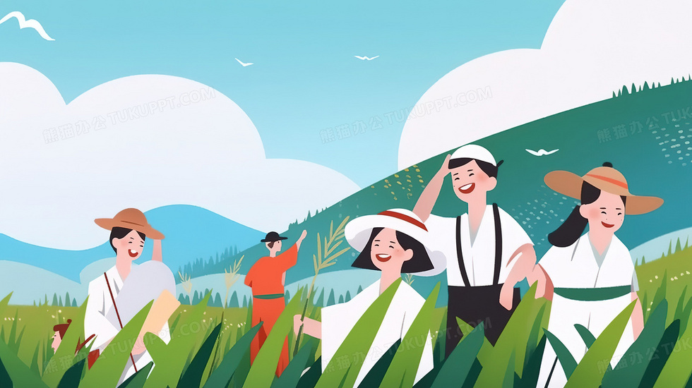 本作品内容为村庄稻田里丰收的农民插画, 格式为 jpg, 大小2 MB, 图片尺寸为2912 x 1632, 源文件无水印, 欢迎使用熊猫办公。 如认为平台内容涉嫌侵权,可通过邮件:tousu@tukuppt.com提出书面通知,我们将及时处理。