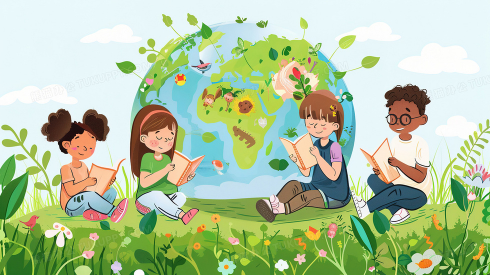 本作品内容为孩子们在草坪上看书保护地球环境插画, 格式为 jpg, 大小4 MB, 图片尺寸为2912 x 1632, 源文件无水印, 欢迎使用熊猫办公。 如认为平台内容涉嫌侵权,可通过邮件:tousu@tukuppt.com提出书面通知,我们将及时处理。