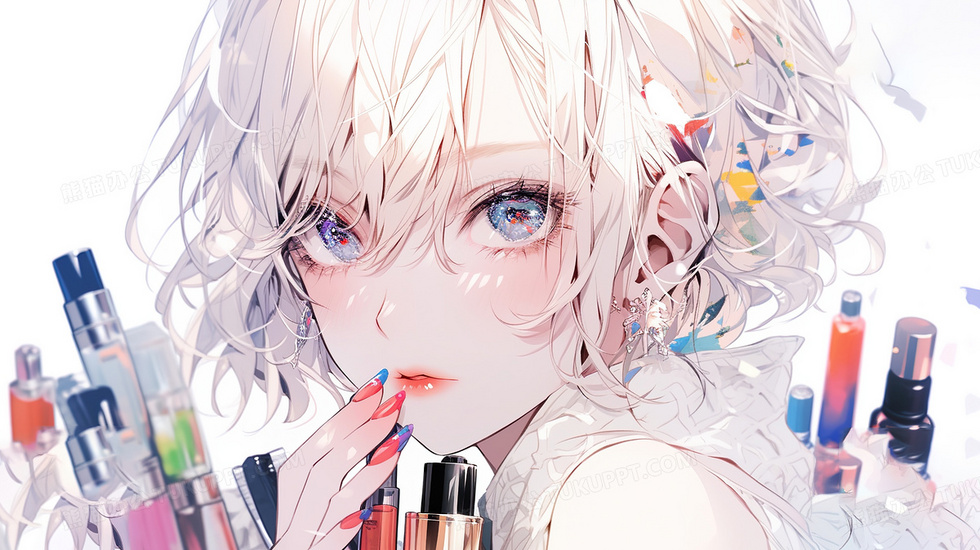 本作品内容为尝试口红颜色的少女插画, 格式为 jpg, 大小2 MB, 图片尺寸为2912 x 1632, 源文件无水印, 欢迎使用熊猫办公。 如认为平台内容涉嫌侵权,可通过邮件:tousu@tukuppt.com提出书面通知,我们将及时处理。