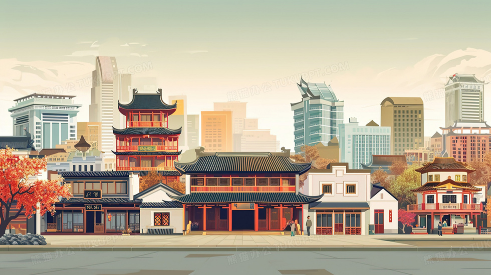 本作品内容为中国风古典建筑街道插画, 格式为 jpg, 大小3 MB, 图片尺寸为2912 x 1632, 源文件无水印, 欢迎使用熊猫办公。 如认为平台内容涉嫌侵权,可通过邮件:tousu@tukuppt.com提出书面通知,我们将及时处理。