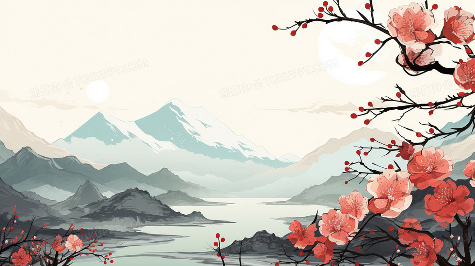 本作品内容为中国风水墨梅花花枝背景, 格式为 jpg, 大小3 MB, 图片尺寸为2912 x 1632, 作品中背景图片无需修改, 源文件无水印,可以直接使用, 欢迎使用熊猫办公。 如认为平台内容涉嫌侵权,可通过邮件:tousu@tukuppt.com提出书面通知,我们将及时处理。