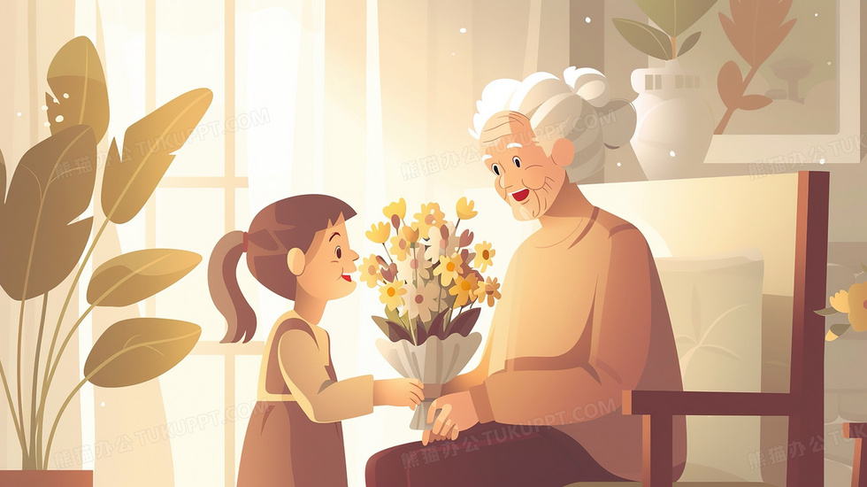 本作品内容为给姥姥鲜花的小女孩插画, 格式为 jpg, 大小2 MB, 图片尺寸为2912 x 1632, 源文件无水印, 欢迎使用熊猫办公。 如认为平台内容涉嫌侵权,可通过邮件:tousu@tukuppt.com提出书面通知,我们将及时处理。