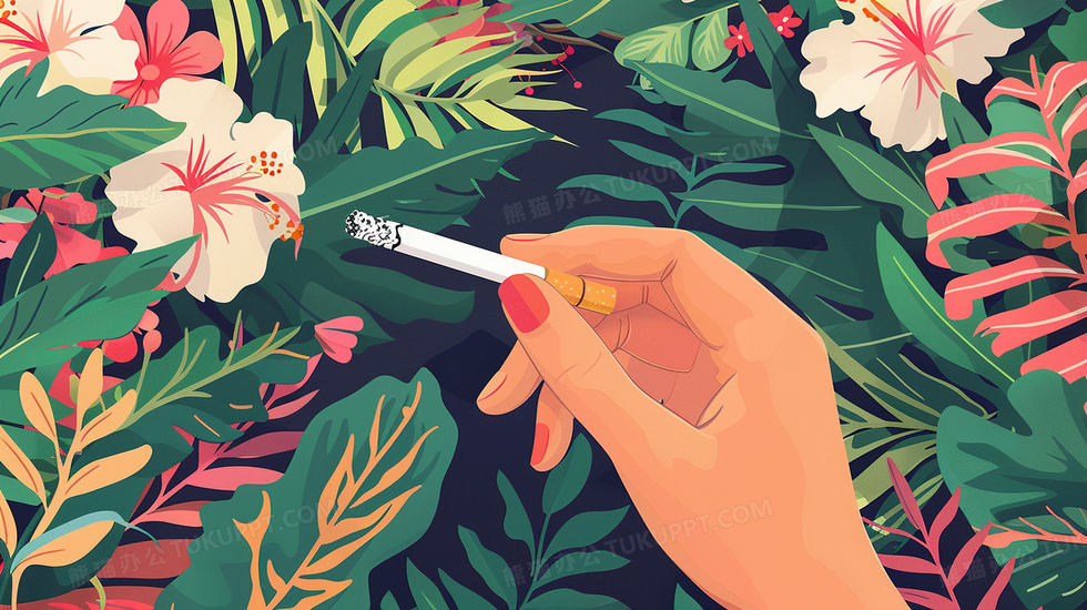 本作品内容为手拿香烟植物花卉插画, 格式为 jpg, 大小4 MB, 图片尺寸为2912 x 1632, 源文件无水印, 欢迎使用熊猫办公。 如认为平台内容涉嫌侵权,可通过邮件:tousu@tukuppt.com提出书面通知,我们将及时处理。