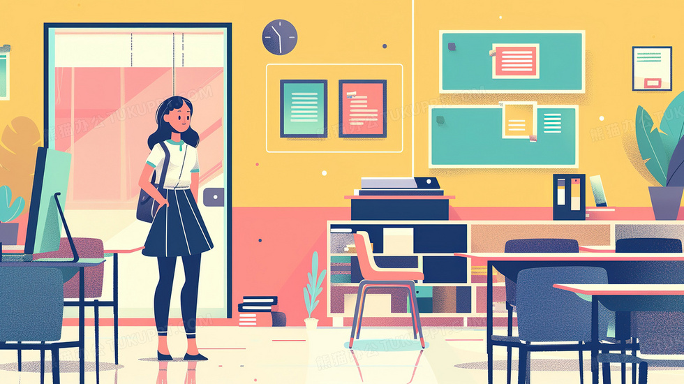 本作品内容为学校教室里的老师插画, 格式为 jpg, 大小3 MB, 图片尺寸为2912 x 1632, 源文件无水印, 欢迎使用熊猫办公。 如认为平台内容涉嫌侵权,可通过邮件:tousu@tukuppt.com提出书面通知,我们将及时处理。