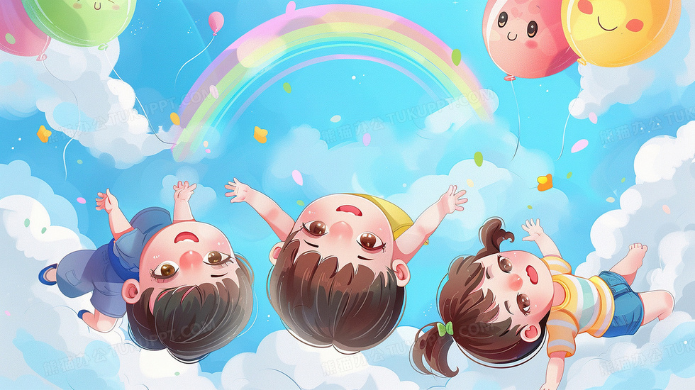 本作品内容为蓝天彩虹气球儿童俯视插画, 格式为 jpg, 大小4 MB, 图片尺寸为2912 x 1632, 源文件无水印, 欢迎使用熊猫办公。 如认为平台内容涉嫌侵权,可通过邮件:tousu@tukuppt.com提出书面通知,我们将及时处理。