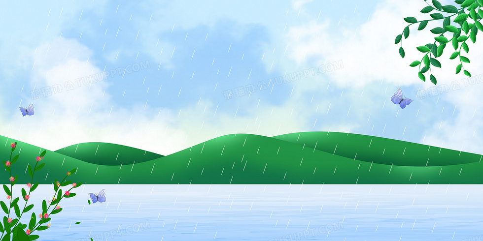 本作品内容为文艺小清新雨水谷雨背景, 格式为 psd, 大小37 MB, 图片尺寸为4724 x 2362, 作品中背景图片无需修改, 源文件无水印,可以直接使用, 欢迎使用熊猫办公。 如认为平台内容涉嫌侵权,可通过邮件:tousu@tukuppt.com提出书面通知,我们将及时处理。
