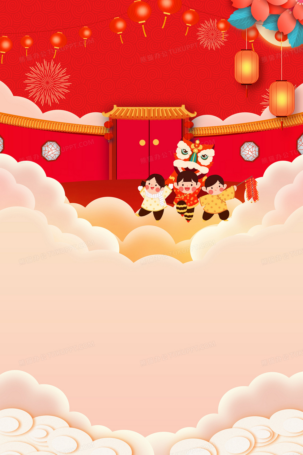 本作品内容为新年元旦中国风喜庆舞狮背景, 格式为 psd, 大小50 MB, 图片尺寸为3543 x 5315, 作品中背景图片无需修改, 源文件无水印,可以直接使用, 欢迎使用熊猫办公。 如认为平台内容涉嫌侵权,可通过邮件:tousu@tukuppt.com提出书面通知,我们将及时处理。