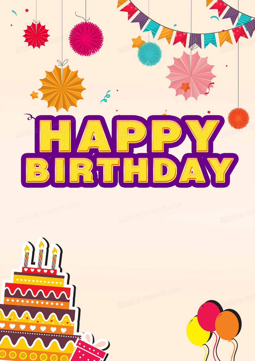 本作品内容为扁平生日快乐背景, 格式为 psd, 图片尺寸为2100 x 2970, 作品中背景图片无需修改, 源文件无水印,可以直接使用, 欢迎使用熊猫办公。 如认为平台内容涉嫌侵权,可通过邮件:tousu@tukuppt.com提出书面通知,我们将及时处理。