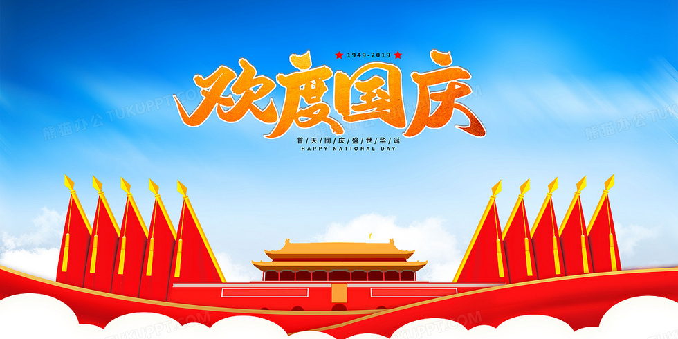 本作品内容为建国70周年欢度国庆大气党建天安门背景, 格式为 psd, 大小90 MB, 图片尺寸为9449 x 4724, 作品中背景图片无需修改, 源文件无水印,可以直接使用, 欢迎使用熊猫办公。 如认为平台内容涉嫌侵权,可通过邮件:tousu@tukuppt.com提出书面通知,我们将及时处理。