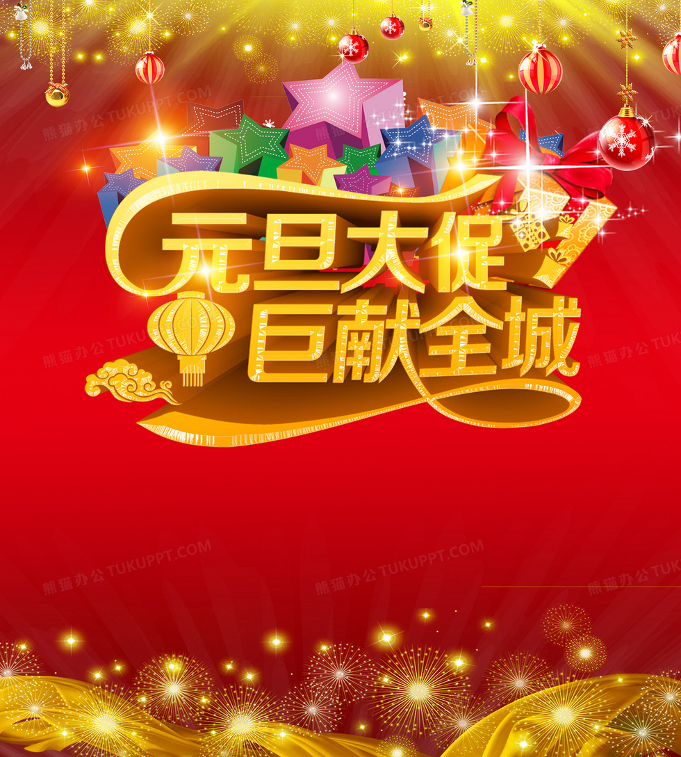 本作品内容为元旦促销红色海报, 格式为 psd, 图片尺寸为3189 x 3543, 作品中背景图片无需修改, 源文件无水印,可以直接使用, 欢迎使用熊猫办公。 如认为平台内容涉嫌侵权,可通过邮件:tousu@tukuppt.com提出书面通知,我们将及时处理。