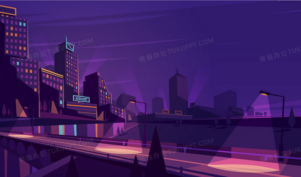 本作品内容为夜晚城市高架桥插画矢量图, 格式为 psd, 图片尺寸为3400 x 2000, 作品中背景图片无需修改, 源文件无水印,可以直接使用, 欢迎使用熊猫办公。 如认为平台内容涉嫌侵权,可通过邮件:tousu@tukuppt.com提出书面通知,我们将及时处理。